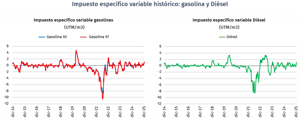 El componente variable sumado al componente base definido en la ley N° 18.502, permite obtener los valores del impuesto específico final de cada combustible incluido en MEPCO. A partir del 11 de diciembre de 2022 comienzan a regir las modificaciones introducidas por la ley N° 20.794 y el Decreto Supremo N° 1.790 que modifica su reglamento. Estas modificaciones permiten definir un impuesto específico variable diferenciado para las gasolinas según su octanaje. Además, desde el 24 de enero de 2023 comienzan a regir las modificaciones introducidas por la Ley N° 21.537 que modifica el MEPCO para evitar fluctuaciones semanales.